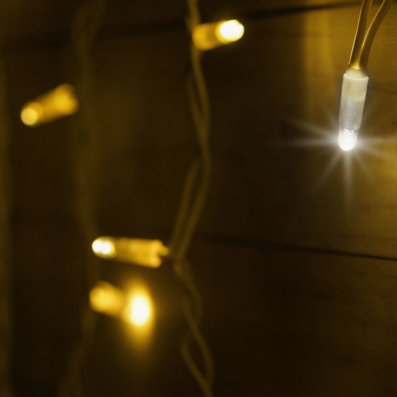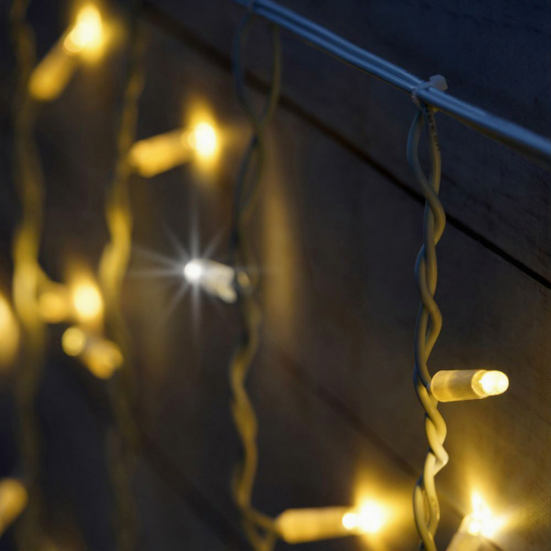 Создайте безупречный новогодний декор с этой утонченной гирляндой, где каждая деталь продумана. Белоснежный провод идеально сливается со снежным покровом и светлыми поверхностями, делая гирлянду особенно аккуратной на крыльце, беседке или фасаде. Пышная бахрома длиной 3 метра излучает тёплое жёлтое свечение, а нежное мерцание белых огоньков создаёт ощущение падающих снежинок.