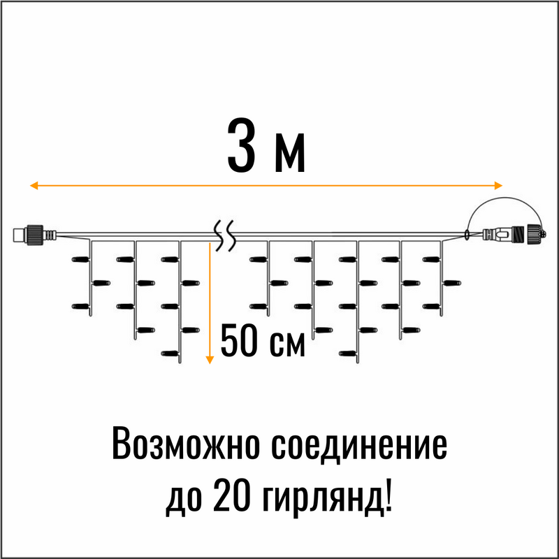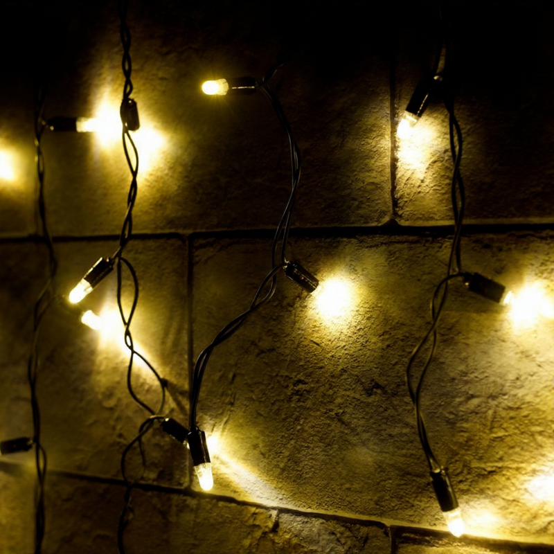 Подарите дому атмосферу уютного зимнего праздника! Эта стильная гирлянда с бахромой длиной 3 метра создает ровное теплое свечение, которое наполнит пространство мягким золотистым светом. Идеальное решение для тех, кто ценит гармонию и эстетику в деталях.