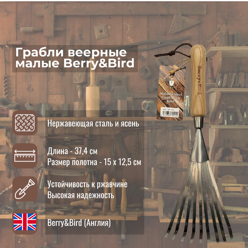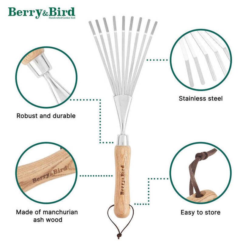 Грабли веерные малые Berry&Bird изготовлены из высококачественной нержавеющей стали с плоскими зубьями, устойчивы к ржавчине, долговечны и легко очищаются. Такой инструмент послужит отличным подарком любому садоводу.