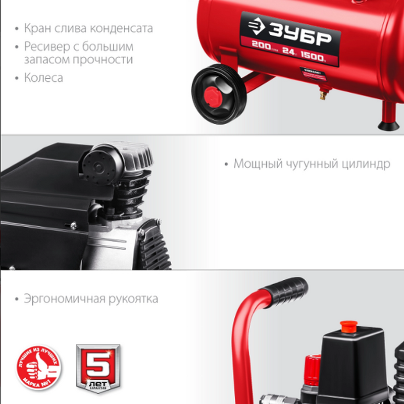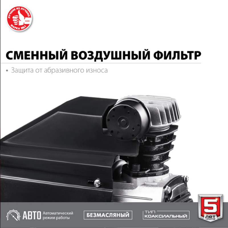 Компрессор воздушный ЗУБР КП-200-24, предназначен для накопления, хранения и подачи воздуха. Компактный и надежный безмасляный компрессор с поршневым типом пневматического механизма. Готов к работе сразу после покупки. Вырабатываемый воздух не содержит примесей масла, что не требует установки дорогостоящих маслоотделителей. Поршневой тип компрессора наиболее производителен среди другим типов. Не требует заправки маслом и контроля за наличием и его замены. Прямой привод упрощает конструкцию и увеличивает надежность. Выключатель давления обеспечивает автоматическое включение/выключение изделия при расходе сжатого воздуха. Сменный воздушный фильтр на входе защищает цилиндро-поршневую группу от абразивного износа. Быстросъемный штуцер обеспечивает удобное и быстрое подключение и отключение пневмоинструмента. Контроль давления в ресивере и на выходе при помощи двух манометров. Самовосстанавливающийся термопредохранитель. Регулировка давления на выходе.