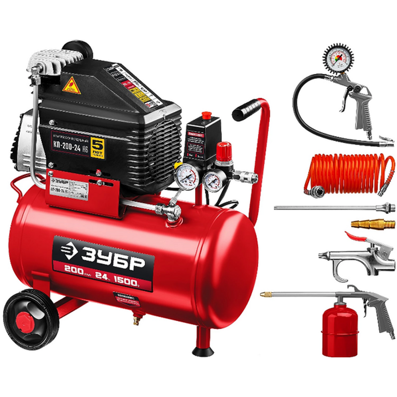 Компрессор воздушный ЗУБР КП-200-24 Н6, предназначен для накопления, хранения и подачи воздуха. Компактный и надежный безмасляный компрессор с поршневым типом пневматического механизма с оптимальным набором мневмоинтрументов. Готов к работе сразу после покупки. Вырабатываемый воздух не содержит примесей масла, что не требует установки дорогостоящих маслоотделителей. Не требует заправки маслом и контроля за наличием и его замены. Прямой привод упрощает конструкцию и увеличивает надежность. Выключатель давления обеспечивает автоматическое включение/выключение изделия при расходе сжатого воздуха. Сменный воздушный фильтр на входе защищает цилиндро-поршневую группу от абразивного износа. Быстросъемный штуцер обеспечивает удобное и быстрое подключение и отключение пневмоинструмента. Контроль давления в ресивере и на выходе при помощи двух манометров. Самовосстанавливающийся термопредохранитель. Регулировка давления на выходе позволяет настраивать давление воздуха зависимости от используемого пневмоинструмента.