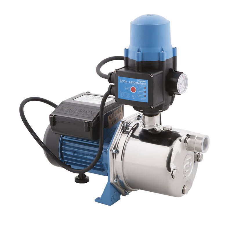 - Благодаря блоку автоматики насос работает в автоматическом режиме, в блок встроена защита от "сухого хода".