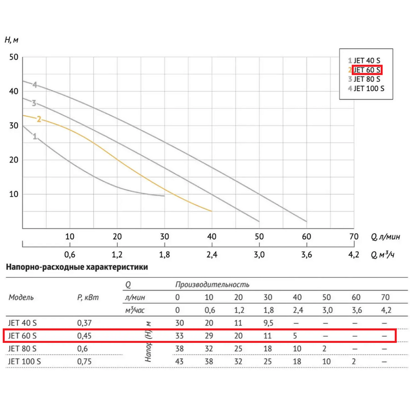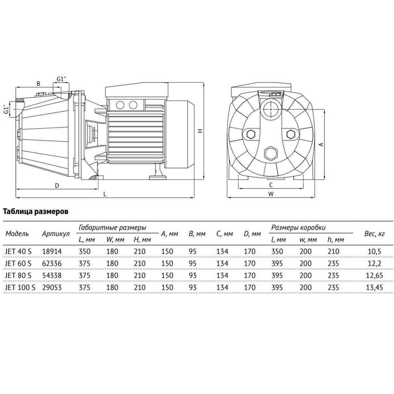 UNIPUMP JET 60 S садовый - однофазный одноступенчатый центробежный поверхностный насос с укороченным эжектором, чугунным корпусом, рабочим колесом из поликарбоната, медной обмоткой статора для подачи чистой холодной воды из скважин и колодцев (глубиной не более 8 метров), открытых водоемов, резервуаров и других источников водоснабжения.
