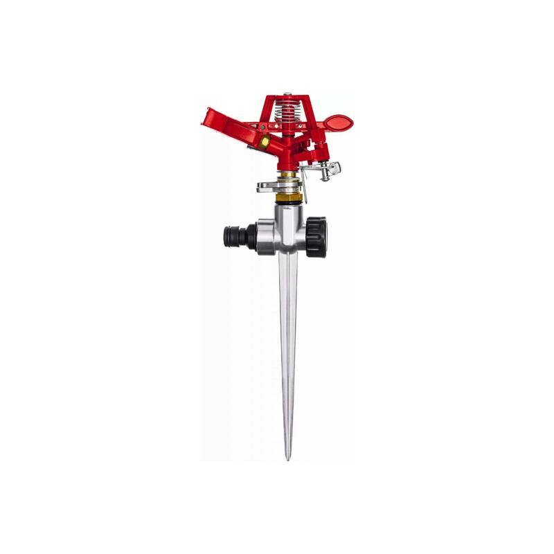 Конструкция распылителя позволяет обрабатывать любой сектор, а также полный круг. Щадящий способ полива сохранит чувствительные растения целыми и невредимыми. Два соединительных гнезда позволяют создать цепочку из распылителей. Конструкция из современного металла гарантирует прочность и долговечность изделия. Надёжно фиксируется в почве пластиковой пикой.